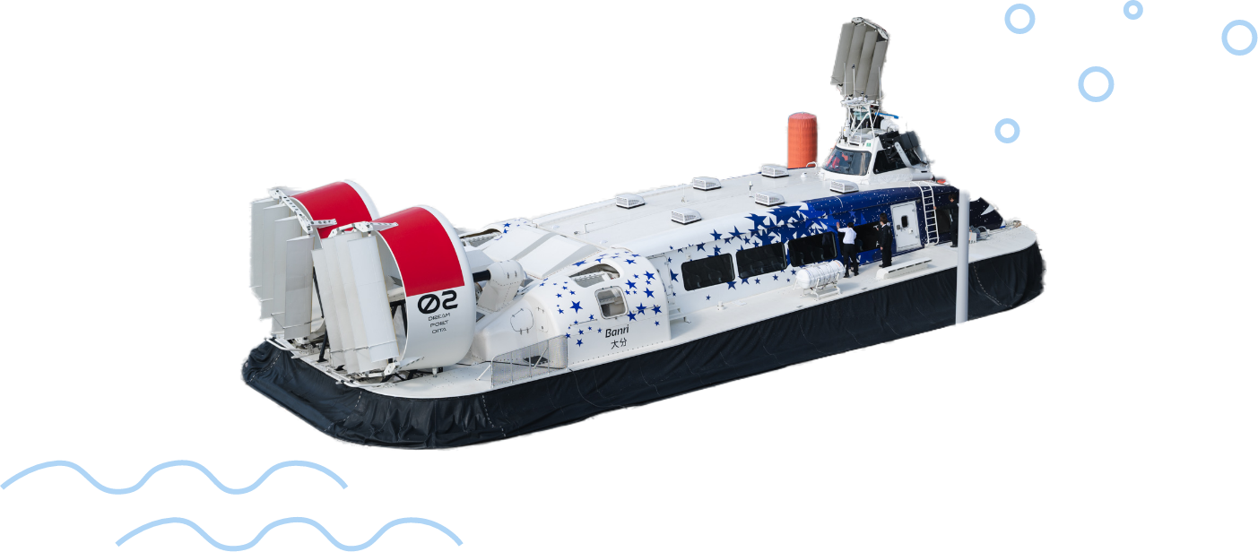 運行するホーバーは「Baien」「Banri」「Tanso」の3隻。最高時速80km以上、定員は80名です。2025年現在、ホーバーが体験できるのは日本でここだけ。貴重な乗船を満喫してみましょう。