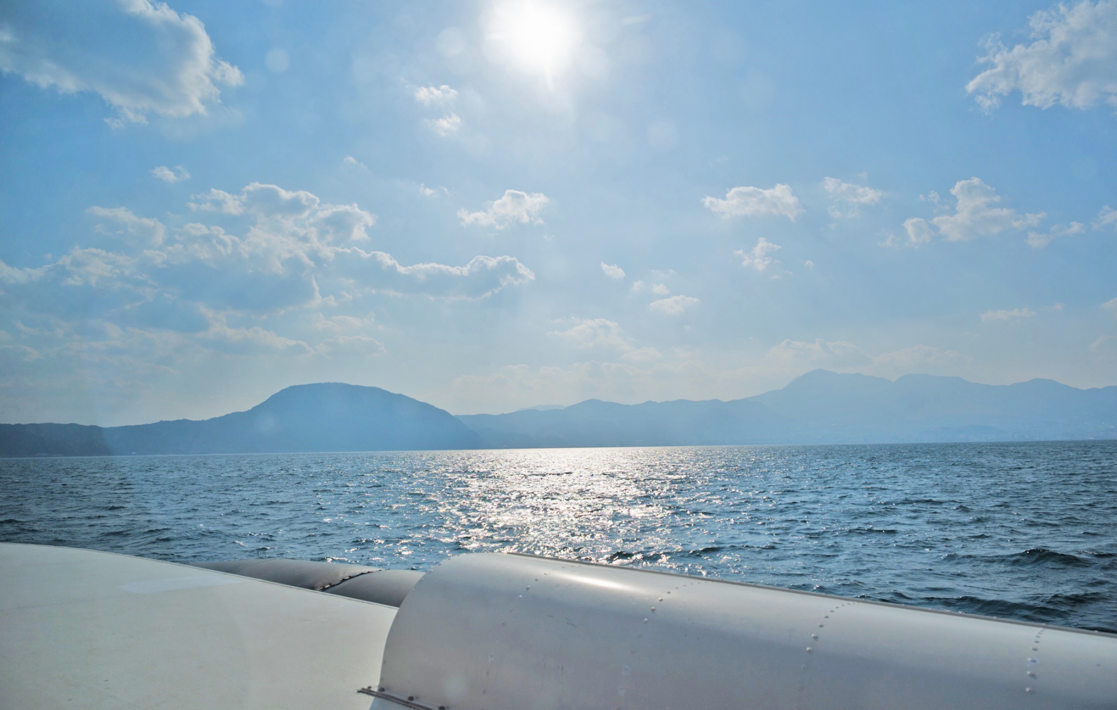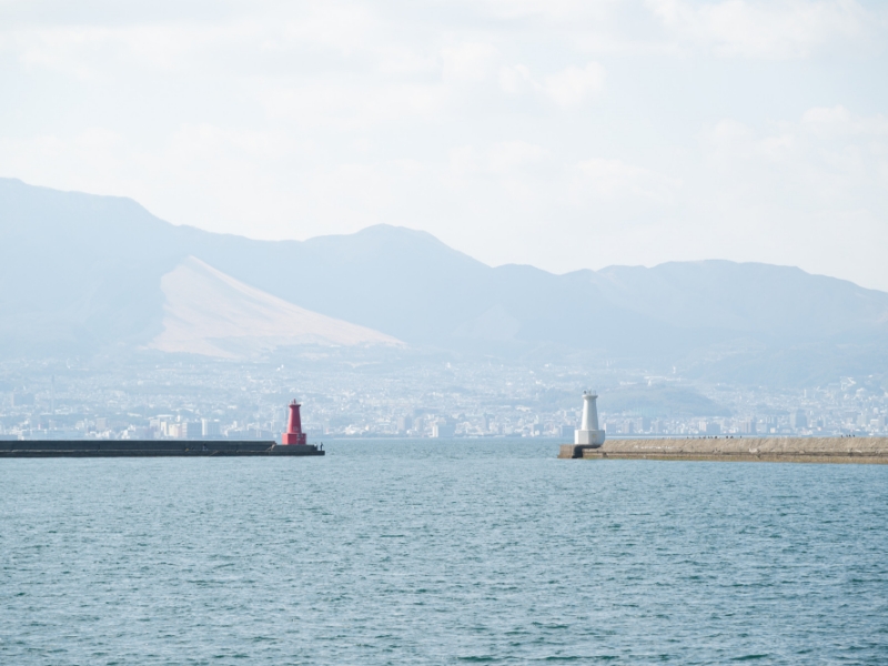 ホーバーターミナルおおいたから出発し戻ってくる周遊便は、不定期で運行中。白灯台・赤灯台を通り過ぎて別府湾を航行、天気がよければ雄大な山々や別府の市街地、大分の工場群の景色を楽しめる約30分間です。
