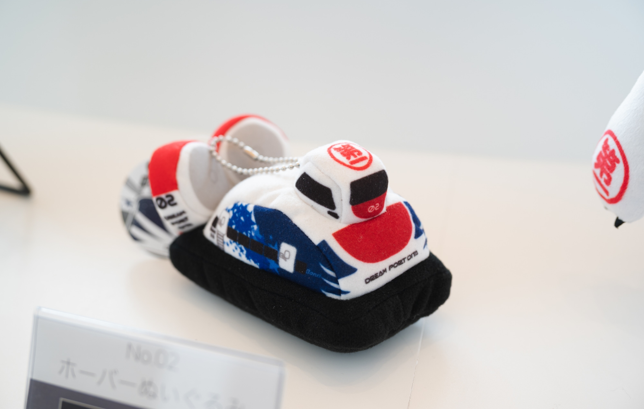 ここでしか買えないチョロQホーバーは一番人気。他にもホーバーイラスト入りタンブラーやホーバぬいぐるみなど、オリジナルアイテムは要チェックです。