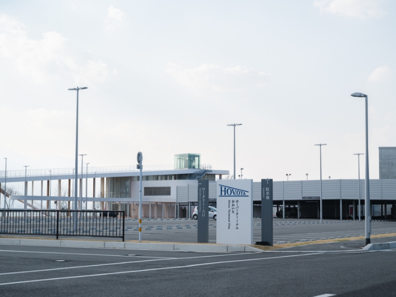 約450台駐車可能なホーバーターミナルのパーキング。ホーバーを利用すれば、駐車料金は無料です。ホーバー下船時に、駐車券の無料処理が行えます。