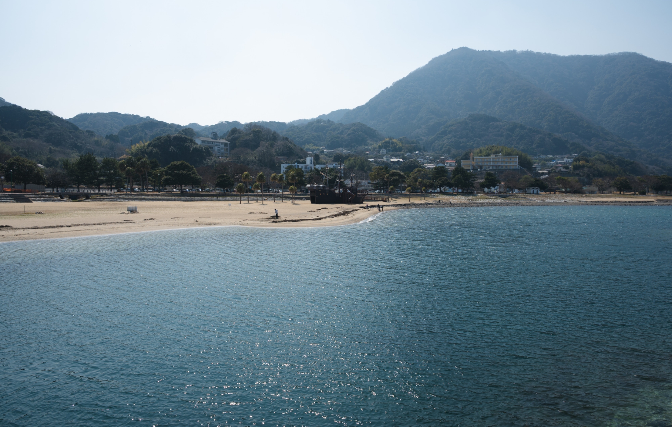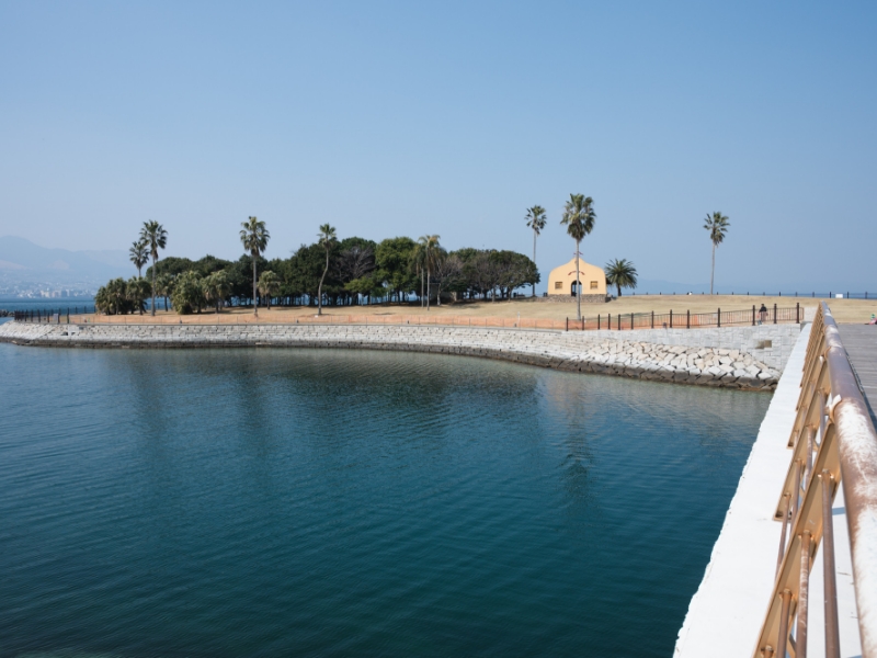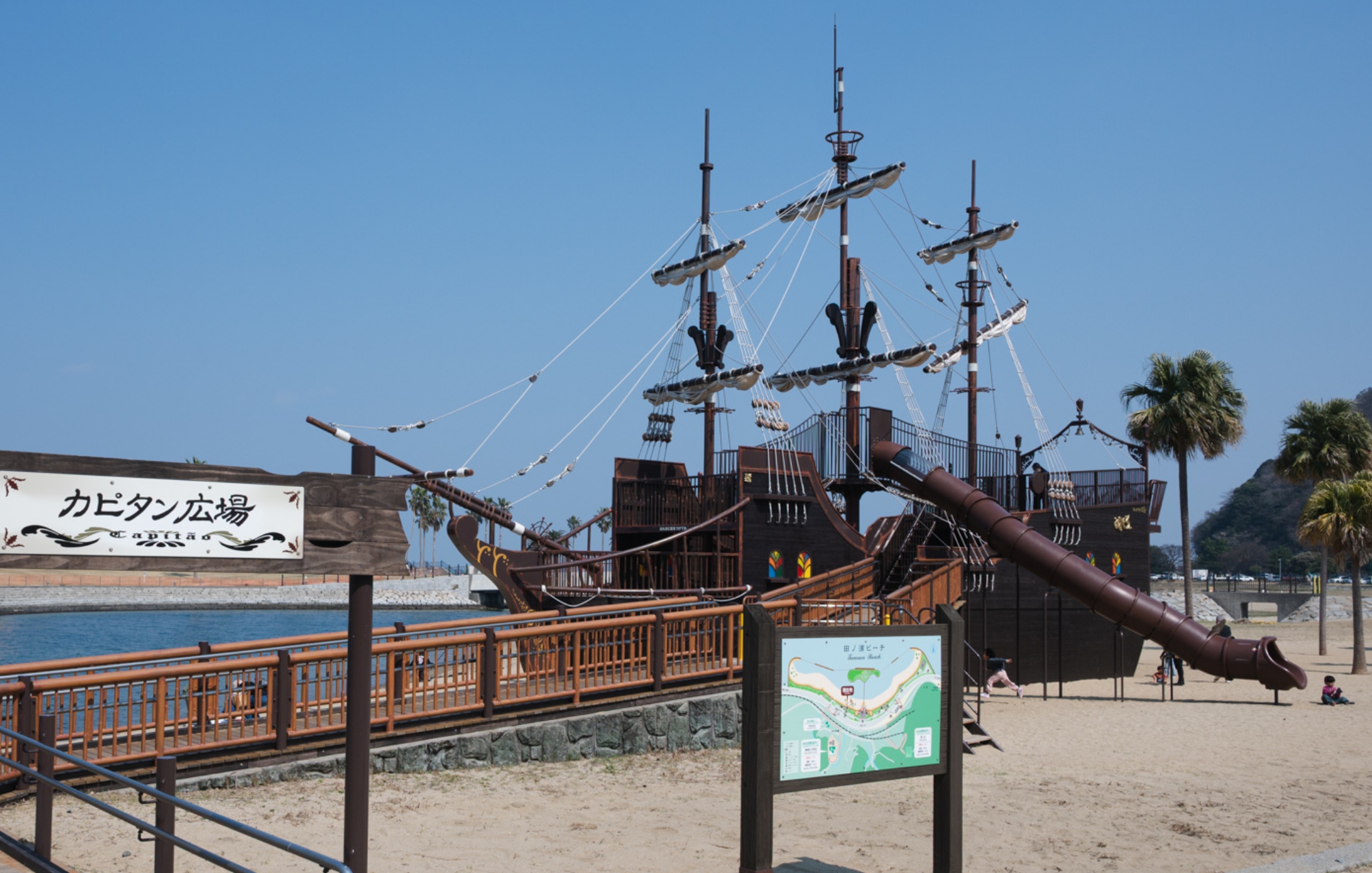 別府湾に面したビーチで、遊歩道も整備された総合公園です。夏は海水浴場として賑わい、夏以外にはピクニックや散策を楽しめる場所。「田ノ浦アイル」と呼ばれる人工島や、船をモチーフにした遊具、シャワー室などが揃っています。
