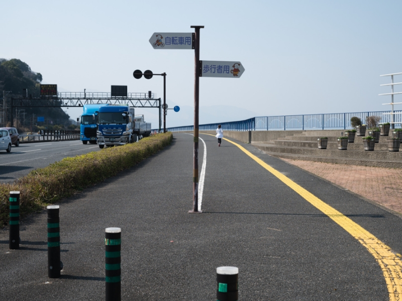 別府市と大分市を結ぶ別大国道は、歩行者・自転車道が整備されています。心地よい風とともに海沿いを走り抜ける、上り下りがほぼない平坦なサイクリングロードです。