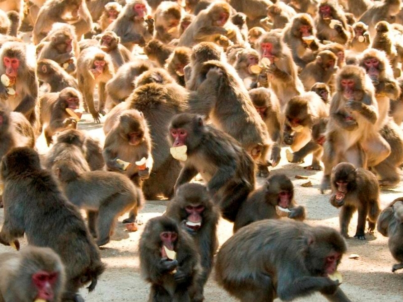 野生のニホンザルを眼の前で観察できる場所。餌の時間になると、猿たちが寄せ場へ大集合。檻も柵もない場所で、自然の状態の猿をじっくり観察してみましょう。